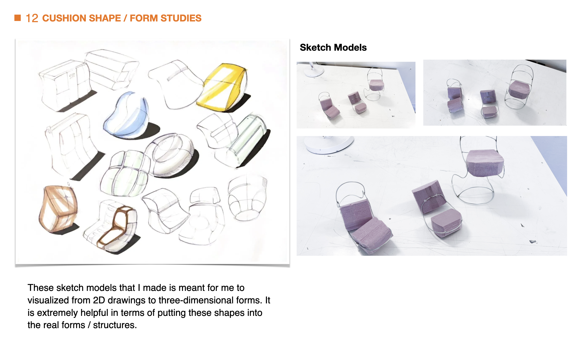THIS DESIGN STAGE INVOLVED HEAVY RESEARCH REGARDING THE FORMS AND POSSIBLE FORMS THAT THE CHAIR CAN POSSIBLY TRANSFORMED INTO IN ORDER TO FIT THE DAILY TASKS.